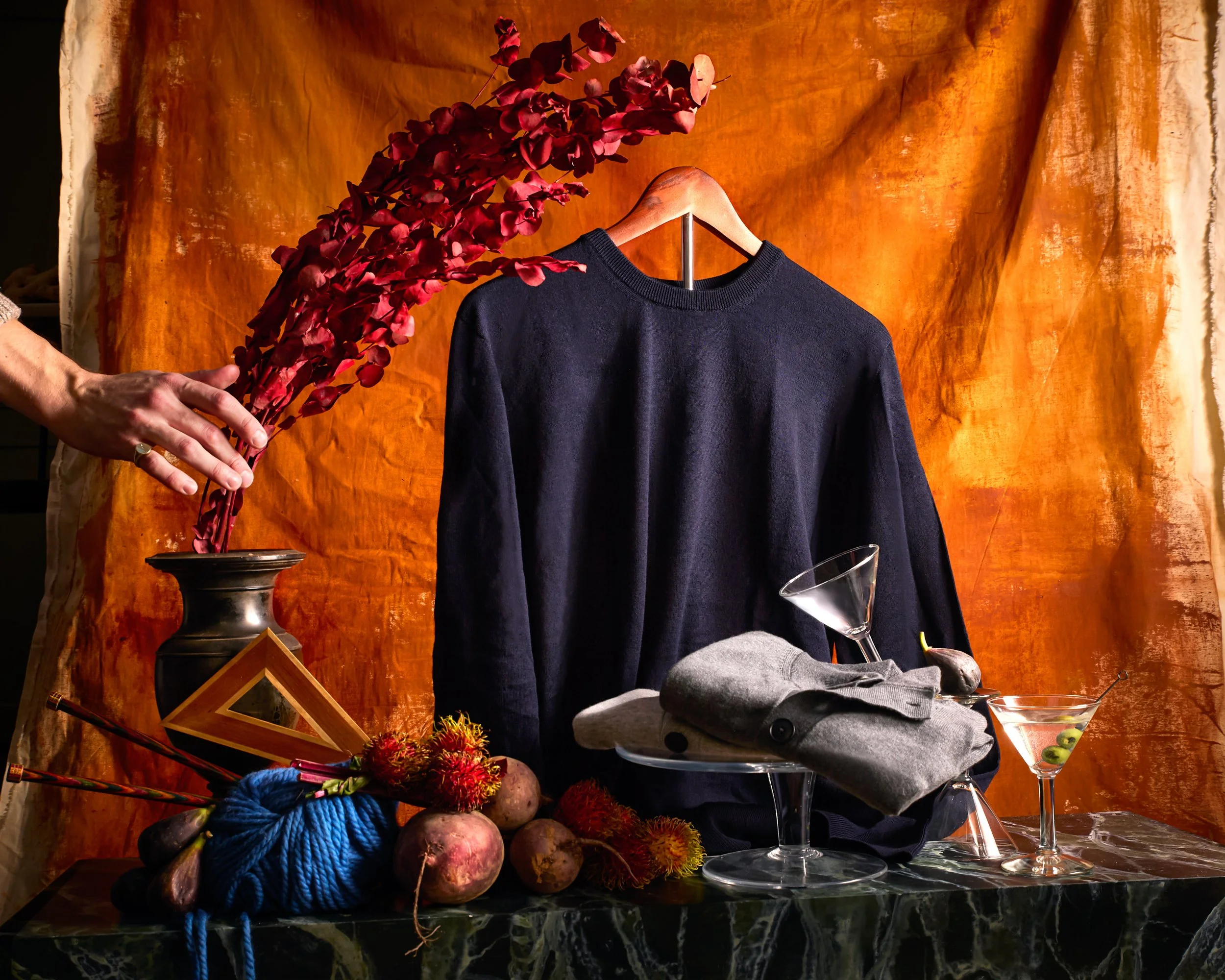 In the campaign we wanted to indicate the special nature of each made to measure garment. They are imagined as precious as a guava specially shipped from South America, with pomegranates glittering like jewels and skulls offering a slightly morbid reminder of life’s timeline and of the longevity of a beautifully crafted piece of clothing.